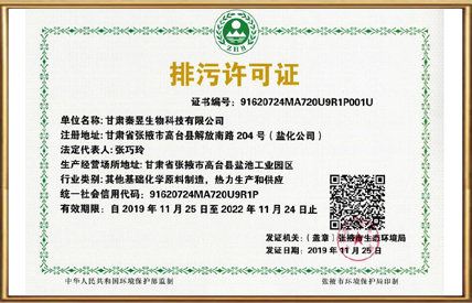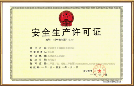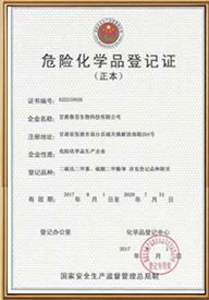 公司為國家高新技術企業,甘肅省科技創新型企業、專精特新企業和張掖市重點生產企業,于2018 年取得了安全生產許可證、危化品經營許可證、危化品登記證等國家要求的各類證書,并通過了ISO9001 質量管理體系、ISO14001 環境管理體系、ISO45001 職業健康安全管理體系認證。